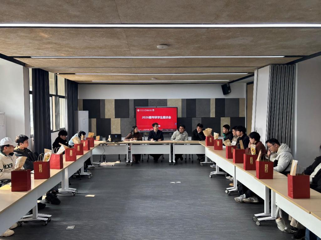 于网络楼622研讨室举行2026届考研学生代表座谈会。学院党总支书记高东波、学工办主任王晓宗出席本次会议,并与30余名考研学生代表进行深入交流。座谈会由辅导员范帆主持。