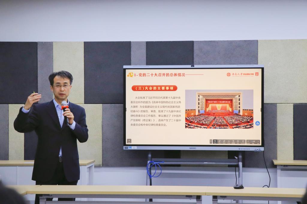 高东波从“党的二十大召开的总体情况”“党的二十大主要精神”“学校贯彻落实党的二十大精神有关具体要求”等三个方面介绍党的二十大的伟大意义和重要指导作用。结合自身海外留学工作经历,他勉励学院团学会干部,要树立远大目标,为祖国强大发展注入新生力量,希望大家坚定“四个自信”,既不盲目自大也不妄自菲薄,踏实完成学业,牢固掌握知识,提高专业技能,为全面建设社会主义现代化强国贡献自己的力量。