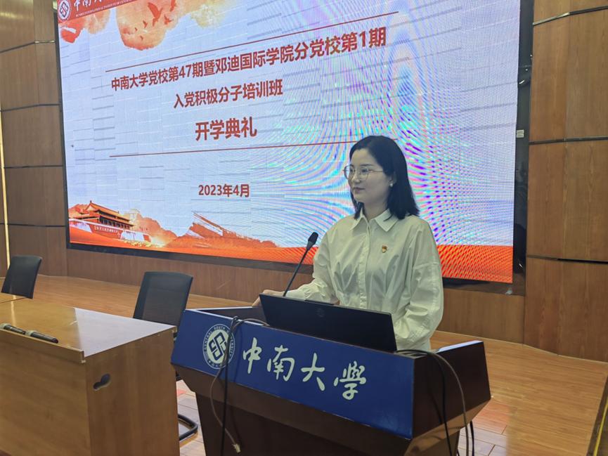 计算机D2202班陈琰同学作为学员代表发言。她代表全体学员郑重承诺,将以最饱满的热情、最全面的投入、最实际的行动来完成此次入党积极分子培训班学习,并以此为开端,在今后的学习生活中继续坚定理想信念,主动加强政治学习,在思想上和行动上同党中央保持高度一致。