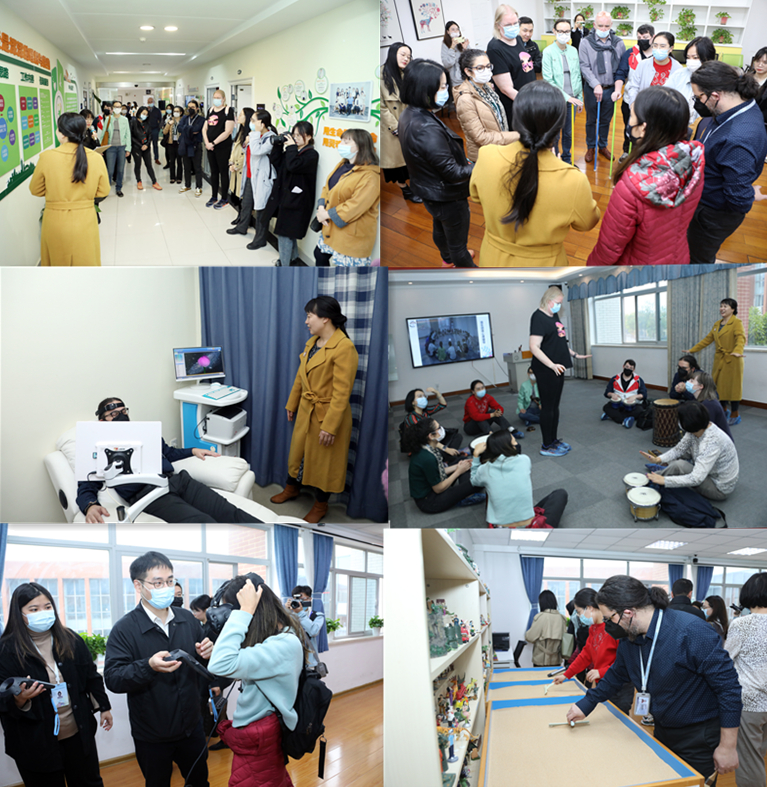 心理健康教育中心及就业指导中心。在心理健康教育中心姜美霞老师的带领下,大家依次参观了接待室、VR体验室、多功能培训室和团体辅导室,参与了两个轻松有趣的团体小游戏。就业指导中心的陈启实老师带领大家参观了职业选择能力训练实验中心。