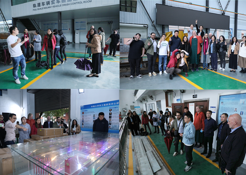 铁道校区。高速列车研究中心副主任伍钒带领大家参观了动模型实验室、实车碰撞实验室及风雪冰洞。土木工程学院王汉封教授带领大家参观了风洞实验室,博士生曾晨为大家讲解了振动台及其原理。随后大家参观了铁路园。