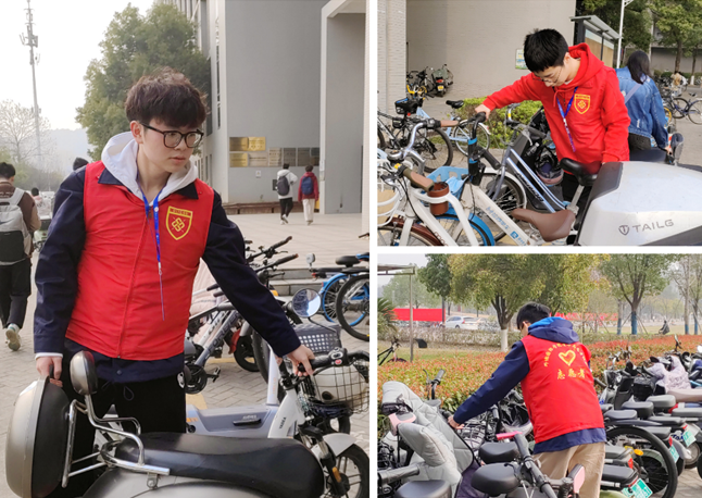 启动式后,学院青志协开展“人停车停,文明不停”文明交通志愿活动,在学院前坪引导师生规范停车、摆放违规停放的非机动车,帮助养成规范停车的好习惯。