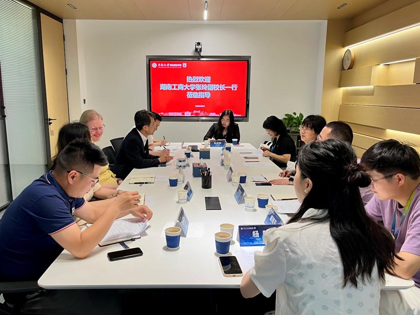 5月19日,湖南工商大学副校长张玲、机关党委书记葛新辉、国际交流与合作处处长徐姝一行来我院开展调研交流。学院党总支书记高东波、各科室负责人参加了此次调研活动。