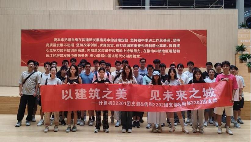 计算机D2301团支部、粉末冶金研究院粉体2303团支部和数学与统计学院信科2202团支部成员齐聚湖南湘江新区城市馆开展“以建筑之美,见未来之城”主题团日活动。