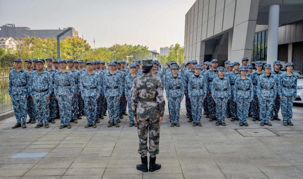 全体新生在新校区体育馆外侧开始了第一天军训训练。同学们告别国庆假期,将以全新的姿态迎接新阶段。