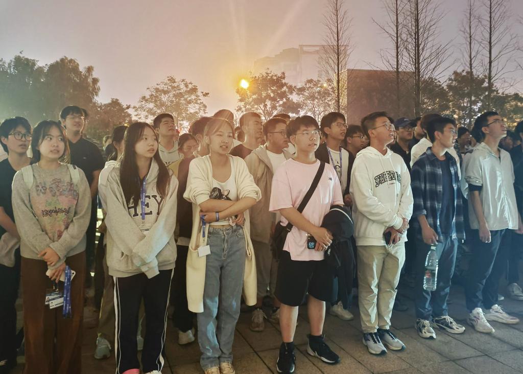 全体2024级新生拍摄了一张独特的年级合照。每个人站在自己的位置上,点亮手机举过头顶,摆出“DIICSU”的字样。这一夜,繁星下落,自下而上点缀了一片夜空,那构成图样的每一个光点,耀眼、独特,共同晕染出这一抹象征着团结、友谊的回忆。军训的夜色,充溢感动,让人难忘。