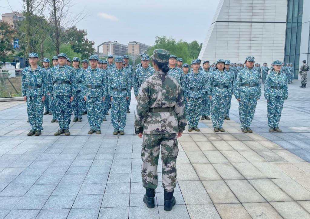 全体新生迎来了新一天的军训。截至今日,同学们已在体育馆前坪进行了两周的训练。