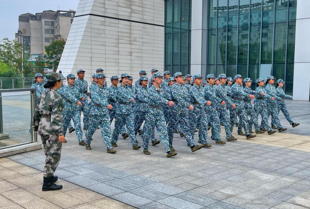 下午的军训重点则转向齐步转正步的行进训练。同学们口号统一,步伐有力,方阵整齐一致。随后的踏步训练,亦体现出大家显著的进步。从军训开始的绵软无力,到现在的步履铿锵,愈发寒冷的秋风,也无法阻止他们前进的步伐。