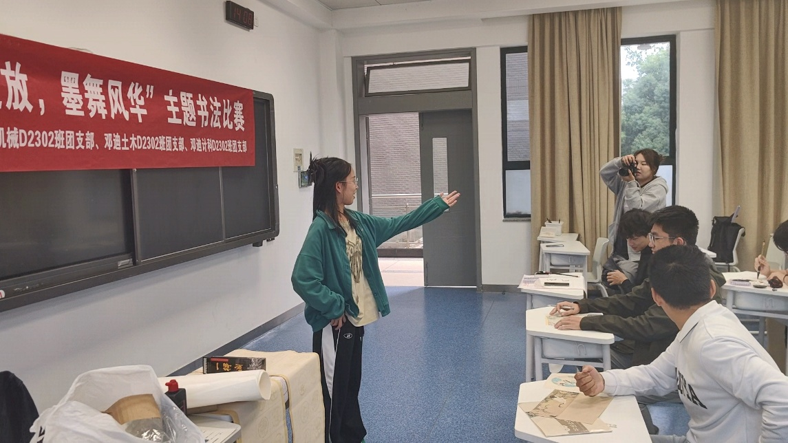 机械D2302班、土木D2302班及计算机D2302班于A座202教室举办了主题为“华彩绽放,墨舞风华”的书法比赛,并于10月20日在外语网络楼六楼展出作品。全院同学积极参与本次活动。