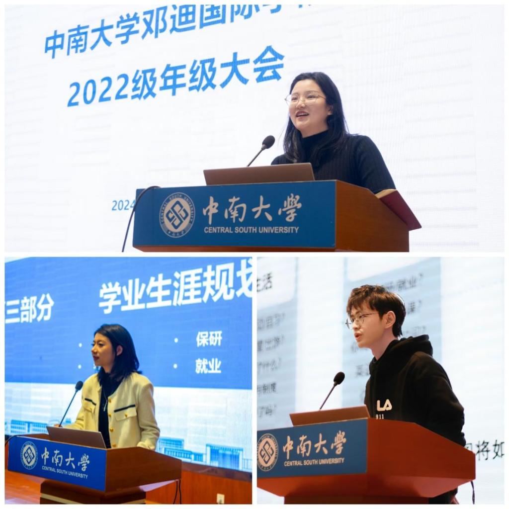 的保研政策、考研流程以及大学生就业路径进行了细致地介绍。在2024级年级会上,曹阳向同学们详细介绍了转专业流程与政策,并为同学们说明了暑期学校的相关情况。同学们就会议内容积极提问,与会老师细心解答了同学们的疑惑。