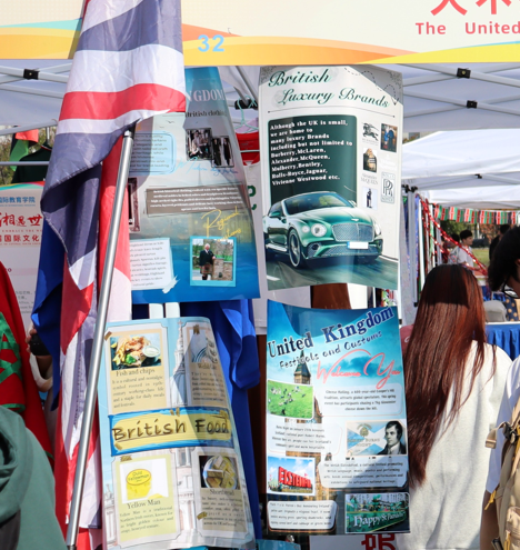 承办的“大不列颠及北爱尔兰联合王国”展位通过特色展览、美食品尝与游戏互动,让师生们近距离感受英国文化的独特魅力。