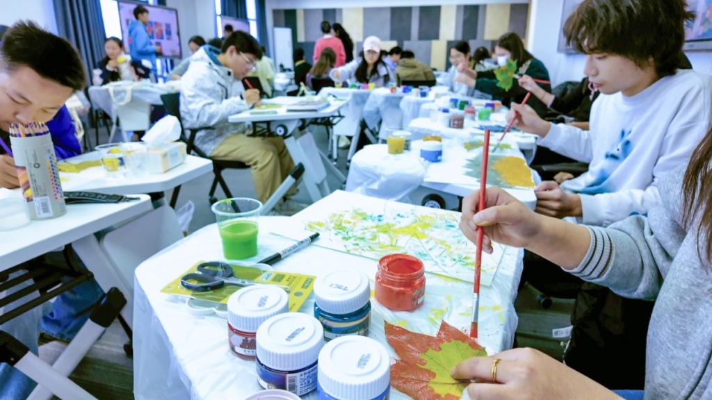 主办,巧妙融合四季流转与树叶非遗手工技艺,吸引了来自多个学院的近60名同学积极参与,现场气氛热烈,创作氛围浓厚。