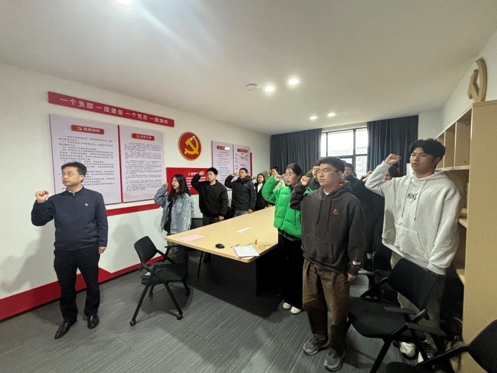 12月4日下午,h小说 预备党员入党宣誓仪式在外语网络楼634党建活动室顺利举行。学院党总支书记高东波出席并讲话,学办主任、组织员王晓宗老师、全体19名学生预备党员参加宣誓仪式。分团委书记、支部组织委员范帆老师主持仪式。大会在雄壮的《国际歌》中拉开序幕,由王晓宗宣读学生预备党员名单。随后,高东波带领全体预备党员宣誓。19名新党员举起右手,面向党旗庄严宣誓,入党誓言,字字铿锵,表达对党的坚定信念和为党...