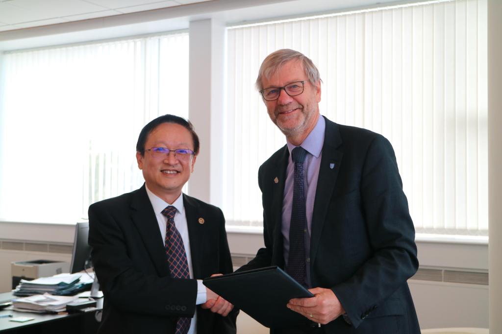 时任邓迪大学校长 Iain Gillespie 携两位时任副校长Lisanne Gibson、Blair Grubb及代表团访问我院