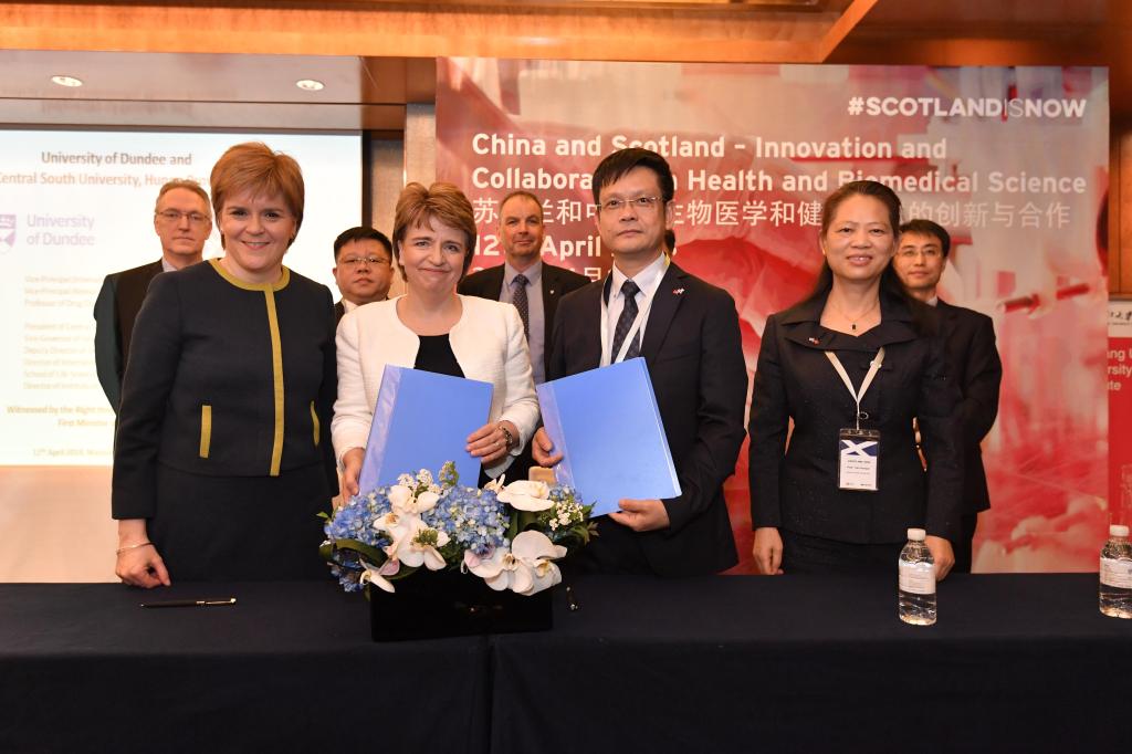 苏格兰首席大臣斯特金会见h小说 校长田红旗,见证两校科研合作意向书签字仪式
